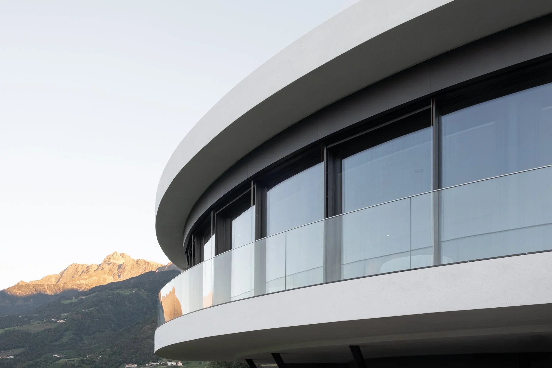 Die Lage am südwestlichen Hang von Dorf Tirol bietet eine einzigartige Herausforderung und Chance: Von den insgesamt neun Ebenen des Gebäudes eröffnet sich eine beeindruckende Aussicht, die in das architektonische Konzept integriert wurde.