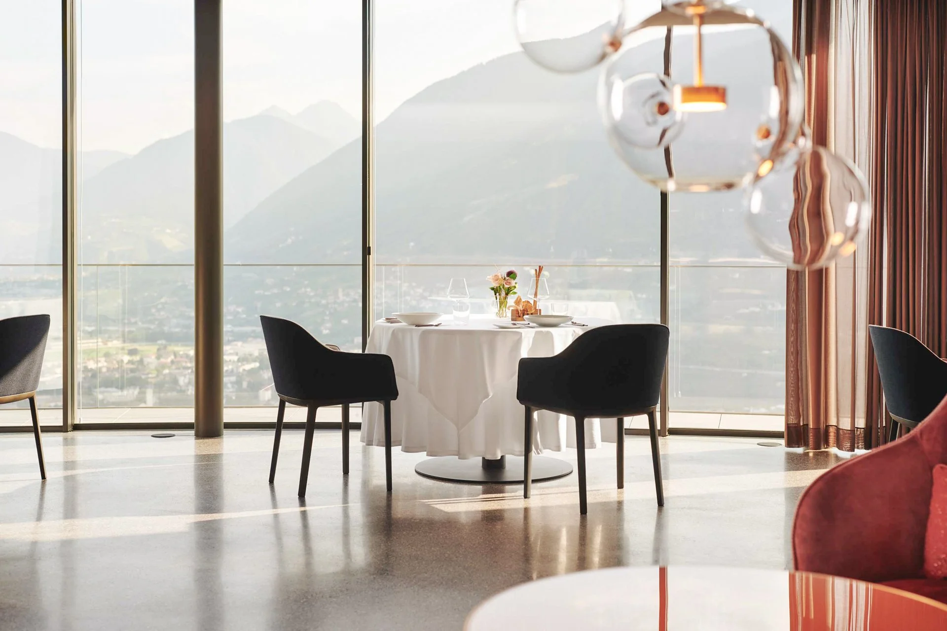 Ein weiteres Highlight ist die sogenannte „schwebende Muschel“ – ein innovatives Raumkonzept mit traumhaftem Blick über Meran, in dem das Gourmet-Restaurant „Castel fine dining“ integriert ist. Dieses Projekt verbindet kreative Raumgestaltung mit funktionaler Eleganz und schafft eine einzigartige Atmosphäre für Gäste. Die exklusive Sterneküche ist ausgezeichnet von Gault Millau, Guide Michelin ** und vielen weiteren Restaurantführern.