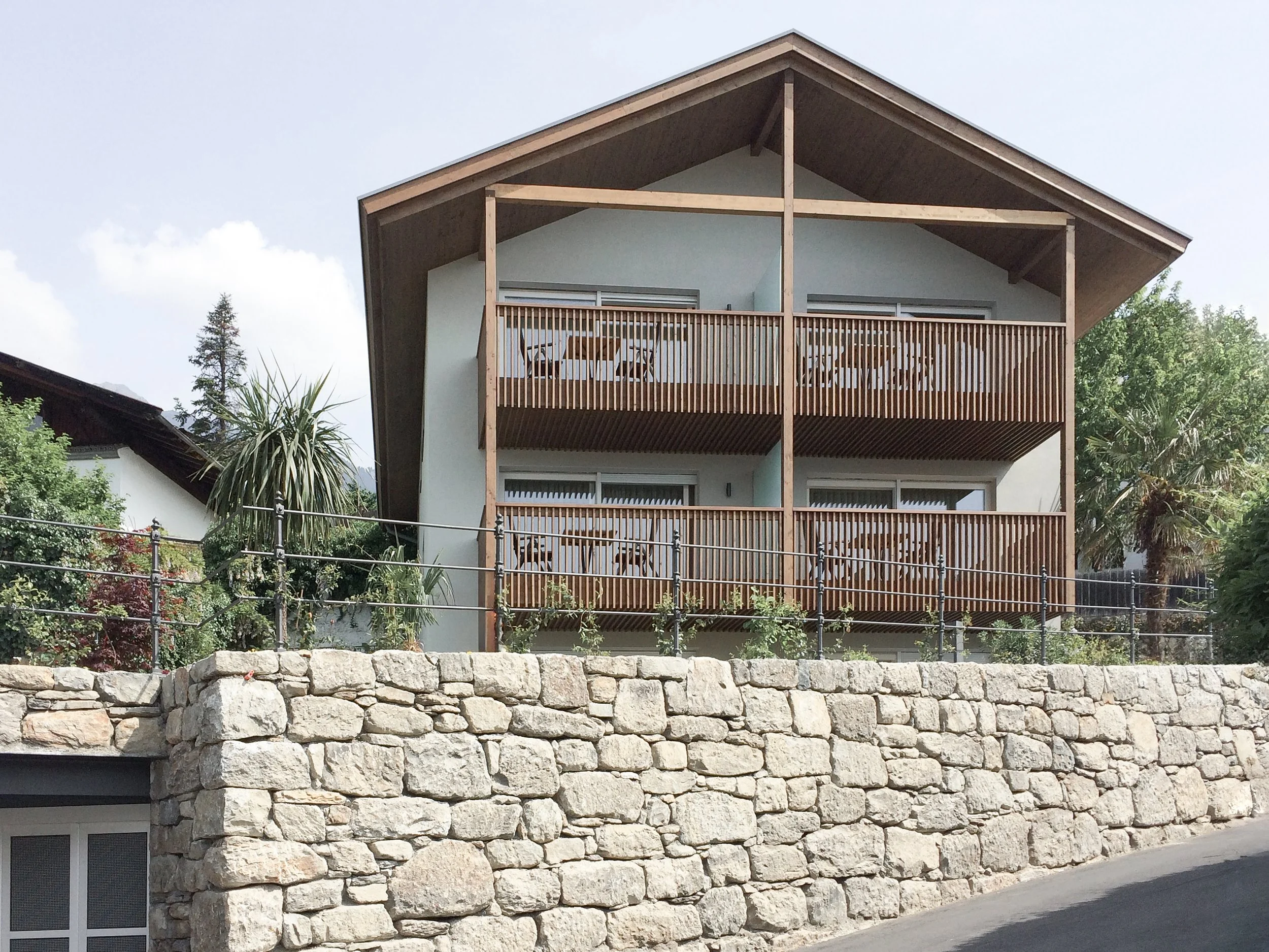 Mit dem realisierten Projekt wurden an der gleichen Stelle 5 Ferienwohnungen und ein Personalzimmer realisiert. Ebenso wurde die behindertengerechte Zugänglichkeit ermöglicht, da mit dem Bau der Tiefgarage eine unterirdische Anbindung an das alte Hotel realisiert wurde. Im Übergangsbereich zwischen Altbau und Garage wurde zusätzlich ein unterirdischer Wellnessbereich untergebracht.